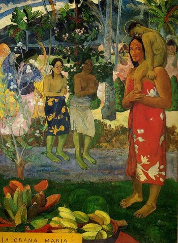 On to Primitivism, probably not a term we’d use today (!) but this was in fact the name given to the borrowing of motifs, folk art and tribal patterns from the cultures of far away places to influence western art at the time. It was thought these cultures were spiritually richer because they lived a ‘simpler’ life which probably does rings true with the way we think today rightly or wrongly. Artists such as Paul Gauguin and Pablo Picasso were famous for using Tahitian motifs with bold patterns and african masks respectively as influences in their work.