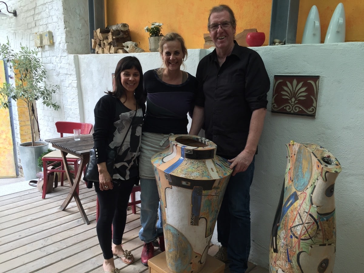 This is the second time today I have been quite taken aback by scale. This time its not architecture but giant ceramic vessels that make me suddenly aware of my small stature. They stand to attention on the floor of the gallery coming just level with my nose! We are warmly invited in on a little tour including Miko and his crazy whip-lash tail that sends me into an internal panic every time we pass an artwork. I am assured however that these works are not easily destroyed and he is served a big bowl of water and allowed to roam happily in the studio and garden.