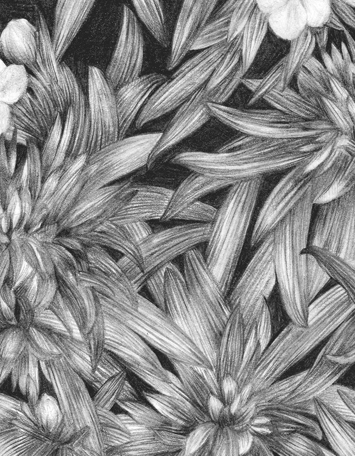 I love that her original pencil drawings in graphite make it all the way to the finished design. They are not overly computer manipulated or perfected and the hand drawn marks and ‘slatey’ textures give them a human touch with an animated feel you would never tire of looking at.