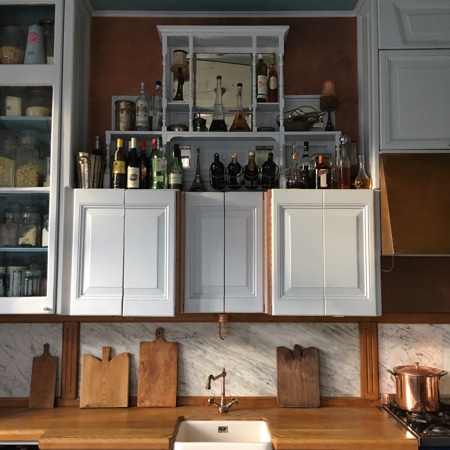 The neighbourhood was built in the 19th century for the dockers, at the time the harbour was just around the corner with all the steamships and warehouses. Our house used to be a bar in those days and we made a cabinet with liquor in the kitchen as a tribute to the pub it once was.