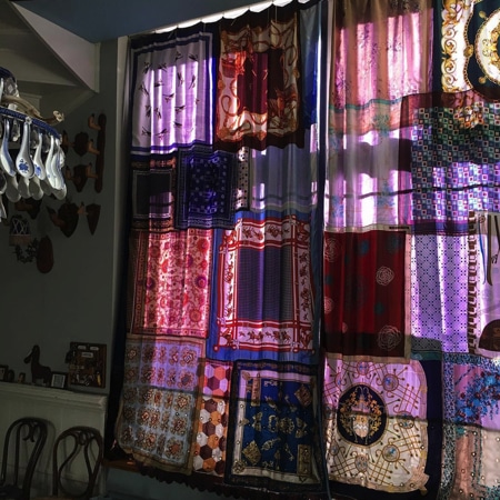 Years ago, I finished art school as a photographer, had a career as a photographer but when the digital era arrived, I stopped. I missed working with my hands so I started making curtains and other fabric wallhangings.