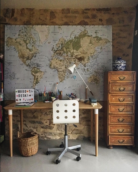 I also like to play around with scale. I have an extra huge map above Mauds desk, I love the drama it creates. Equally, sometimes the smallest, most intricate object placed in its own space can really draw the eye.