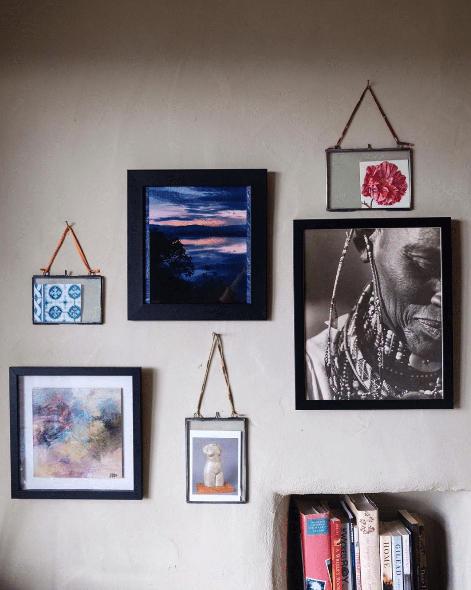 The girl’s art – whether its Kitty’s hand paintings that she did when she three or Maud’s ceramics that she made during her first lessons at the wheel are in pride of place. My desk is surrounded by art I love, a portrait photo of Kamiti a Masia friend in Kenya, a beautiful painting by Karenina Fabrizzi, a Barbara Hepworth postcard, an exquisite large amber bead bought in Uganda sits on my desk. These are pieces of art that I find inspiring. The art as a whole plays a huge part in the aesthetics and uniqueness of our family home, our art becomes a personal expression of what we love in life.