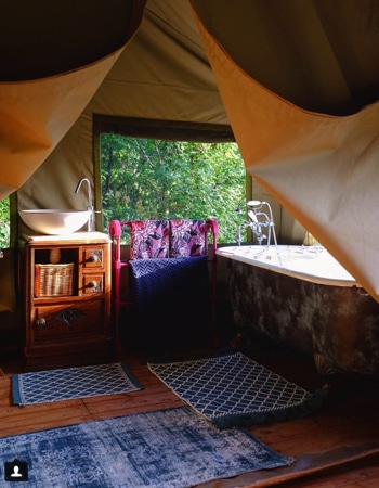 My interior style constantly evolves and shifts and is full of juxtapositions. I love to mix both old and new, modern and traditional. I have traveled a lot over the years not just in Africa but in India and Morocco and I think that really influences my interiors today. In my eyes, the most beautiful African safari camps use all natural materials that reflect a symbiotic relationship with its surrounding environment. An example of this for me was when I was determined to source a company that was willing to build the terraces with natural chestnut, despite being told square planed poles were the way to go.