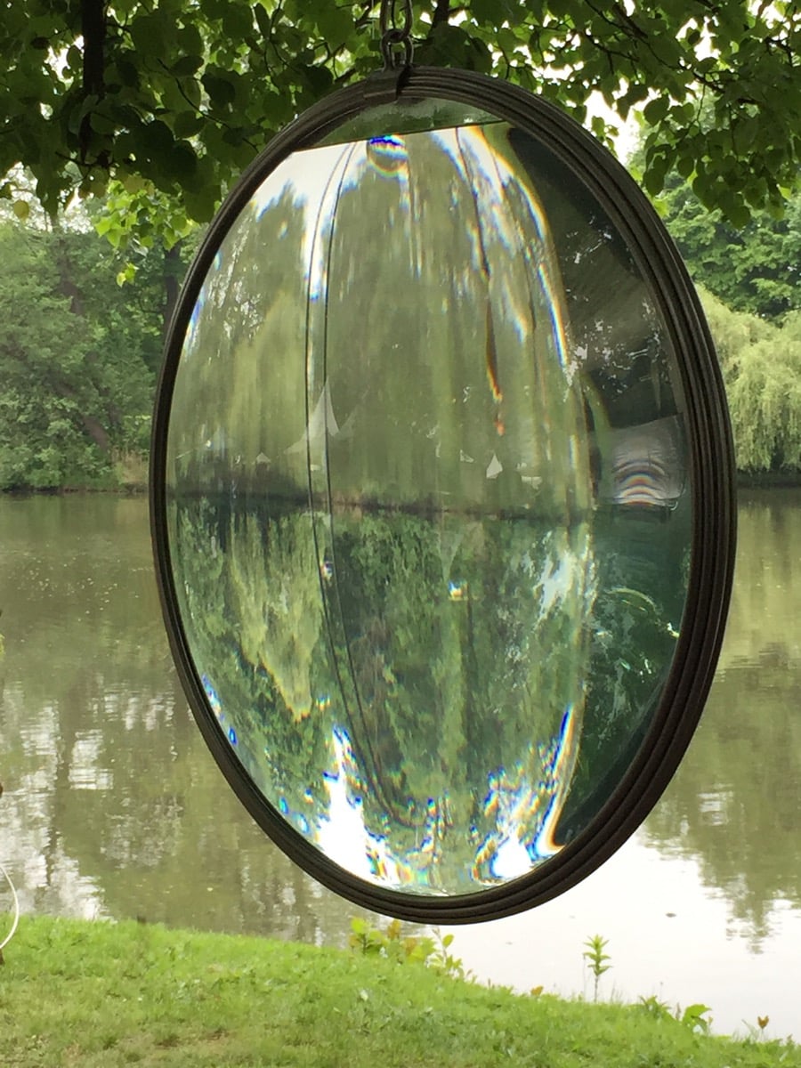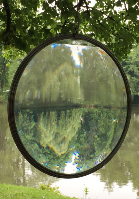 Thankfully all is not lost. I discover these fantastic monumental hanging glass lenses which I have tagged for a ‘yet-to-be-determined’ place in our garden. I like one or two whimsical things in the garden- to surprise and be discovered – as long as it doesn’t get too silly, new agey or bitty ( I feel a garden-themed post coming on!). These though, are both grand and sculptural, kind of Alice-in Wonderland crosses Victorian curios and with a slightly hypnotic effect – great for forcing you to relax and zone out from the stresses of a busy day. They looked especially intriguing hung from a tall long limbed tree slumped over the nearby waters edge. Hmmmm where to put? We don’t have a willowy tree ….or a pond for that matter but I’ll think of something.