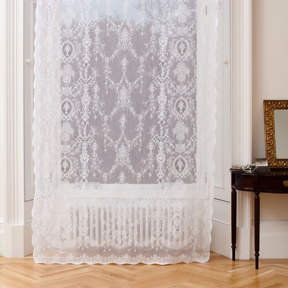 Another gorgeous Victorian style lace, less dense than the Lydia design and a little more formal. Its floral tendrils and cameo like details make it a classic for a grand bedroom or dining room.