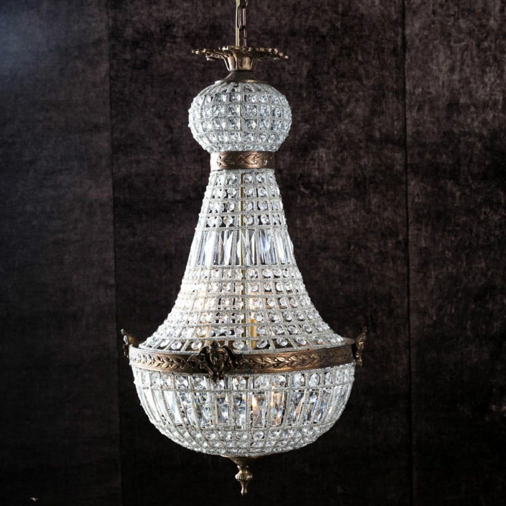 The stunning Celestine Vintage French Chandelier will bring a little old world decadence to your home. Her elegant shape and twinkling crystallised glass drops look especially magical when set against a more rustic back drop or pared down contemporary lines. Available in varying sizes, sheโรรดll bring French elegance to a large room or theatrical charm to a smaller guest room or bathroom. ( larger sizes available on request)