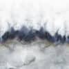 A stunning abstract wallpaper mural by painter Jen Merli| with intricate detailing shown in the gold colour that flashes across the teal and grey watercolour background.