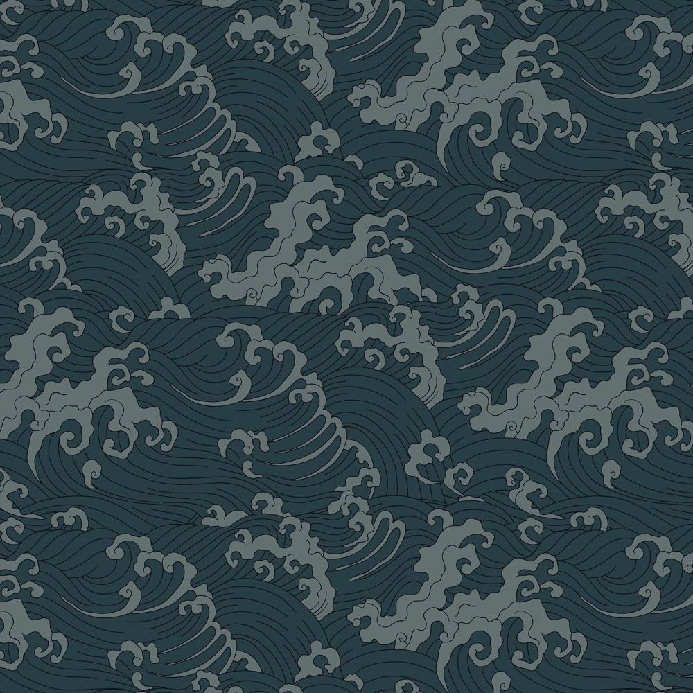 SAMPLE – Ocean Spray (Japanese Wave) Wallpaper – Dark