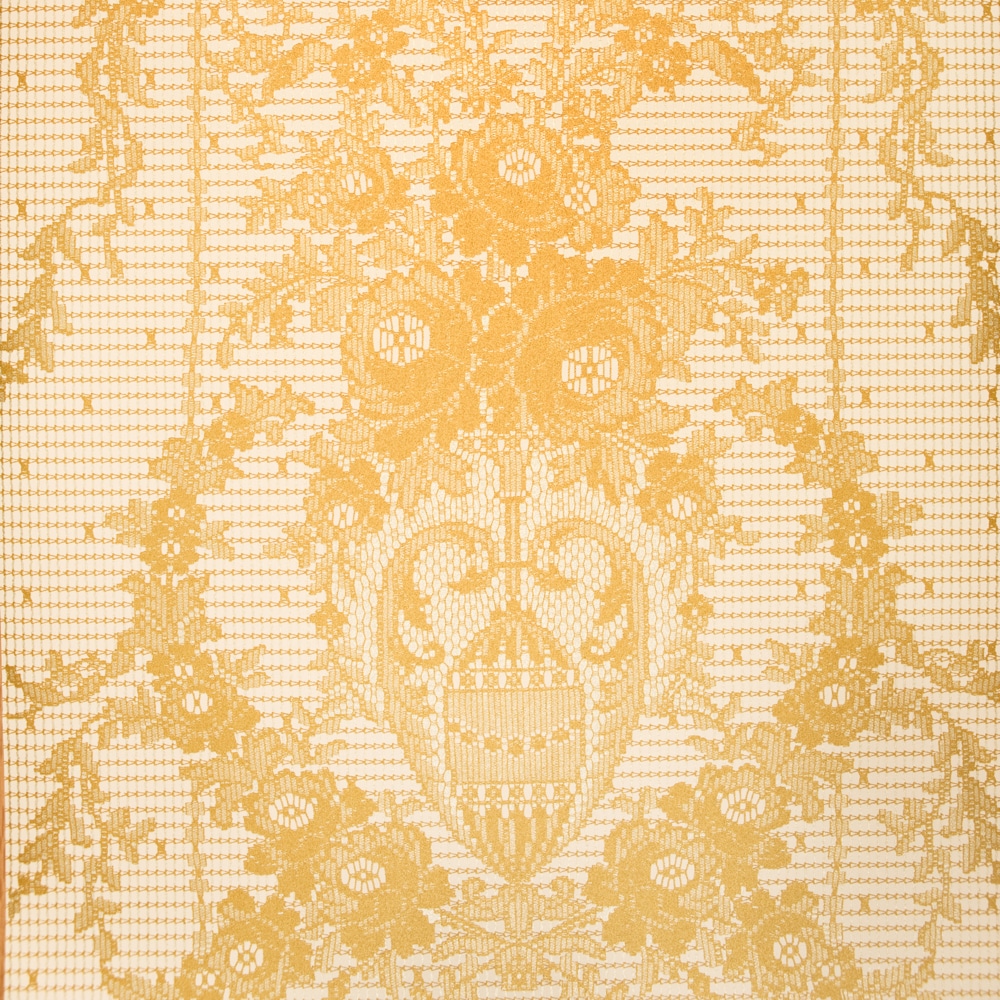 SAMPLE-Rose Damask Paper Lace Wallpaper – Gold Yellow