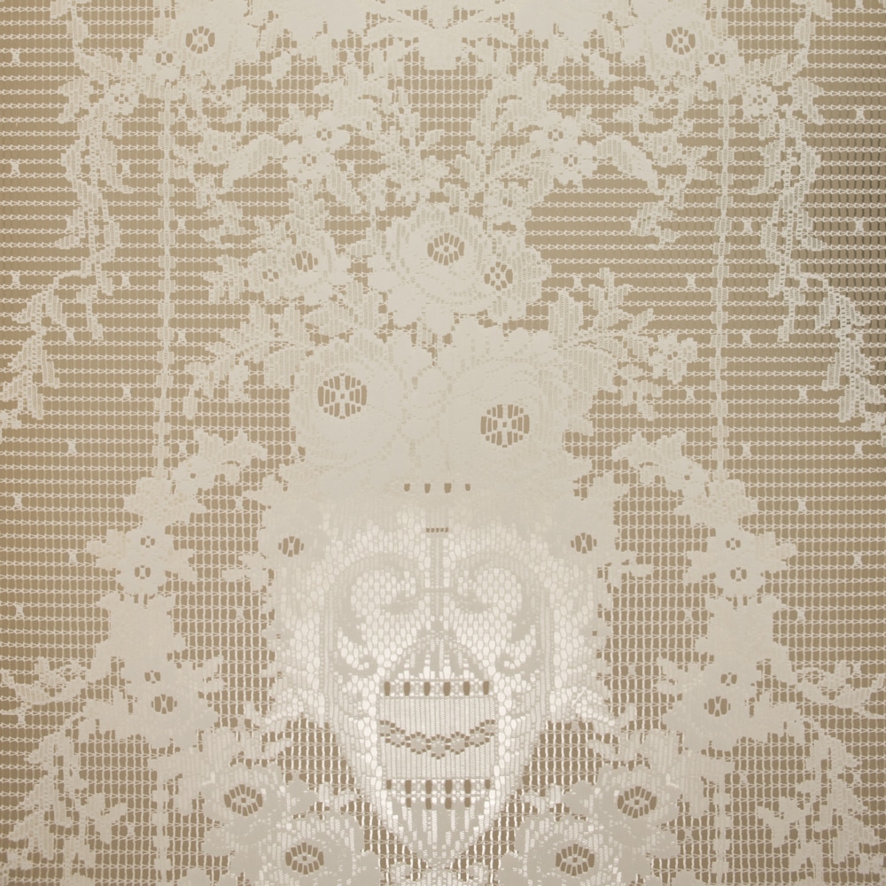 SAMPLE-Rose Damask Paper Lace Wallpaper – Grey Steel